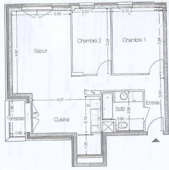 deux chambres, salle de bains